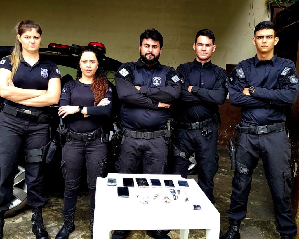 Pelo tamanho, um dos celulares apreendidos dentro de um material de crochê chamou muito a atenção, com menos de 5 cm, difícil de ser percebido, mas uma arma poderosa para prática dos crimes de falsos sequestros.